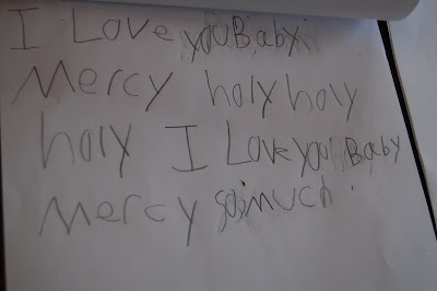 His little lullaby is making me melt...you need to frame that and keep it forever. So precious!
